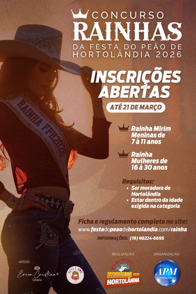 “O Concurso Rainhas da Festa do Peão é uma oportunidade de valorizar nossas moradoras e trazer mais brilho à tradição da Festa do Peão. Estamos ansiosos para descobrir novos talentos e celebrar a beleza e o encanto de Hortolândia”, destacou o organizador Adriano Mônaco.